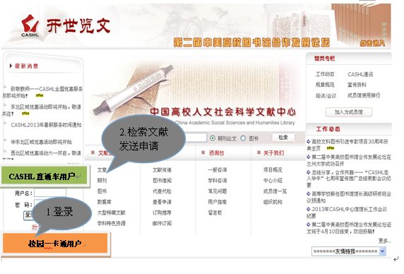 已注册过BALIS/CALIS融合系统的读者,请通过“校园一卡通”用户接口登录CASHL系统http://www.cashl.edu.cn/portal/index.jsp,使用学号/工号直接登录,检索文献提交申请。