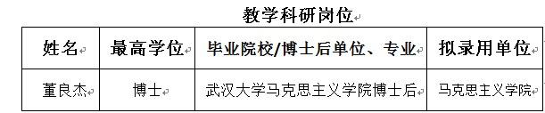 根据公开招聘有关规定,按照学校2016年度人才招聘计划的部署及工作安排,拟确定以下人员为米兰2016年度第四批人才招聘拟录用人选。其中,教学科研岗位招聘经校院两级资格初审与复核、学院组织试讲与答辩、校教师遴选委员会审议等环节,经校、院共同研究确定相应人选;非教学科研岗位招聘经校院两级资格初审与复核、学校组织笔试与面试等环节,最终经学校与用人单位共同研究确定相应人选。为保证招聘工作的公开、公平、公正,现对拟录用人选(名单见附件)予以公示。