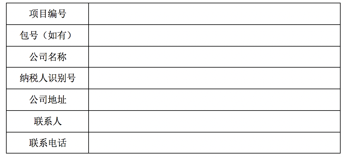 请将电汇底单及以下表格发邮件至jowena@163.com,邮件主题请统一填写:购买标书信息+项目编号,通过邮件方式确认报名。