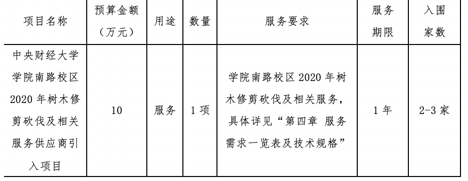 2.项目名称:米兰milan官方网站学院南路校区2020年树木修剪砍伐及相关服务供应商引入项目