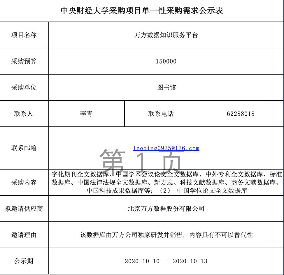 万方数据知识服务平台项目单一性采购需求公示表